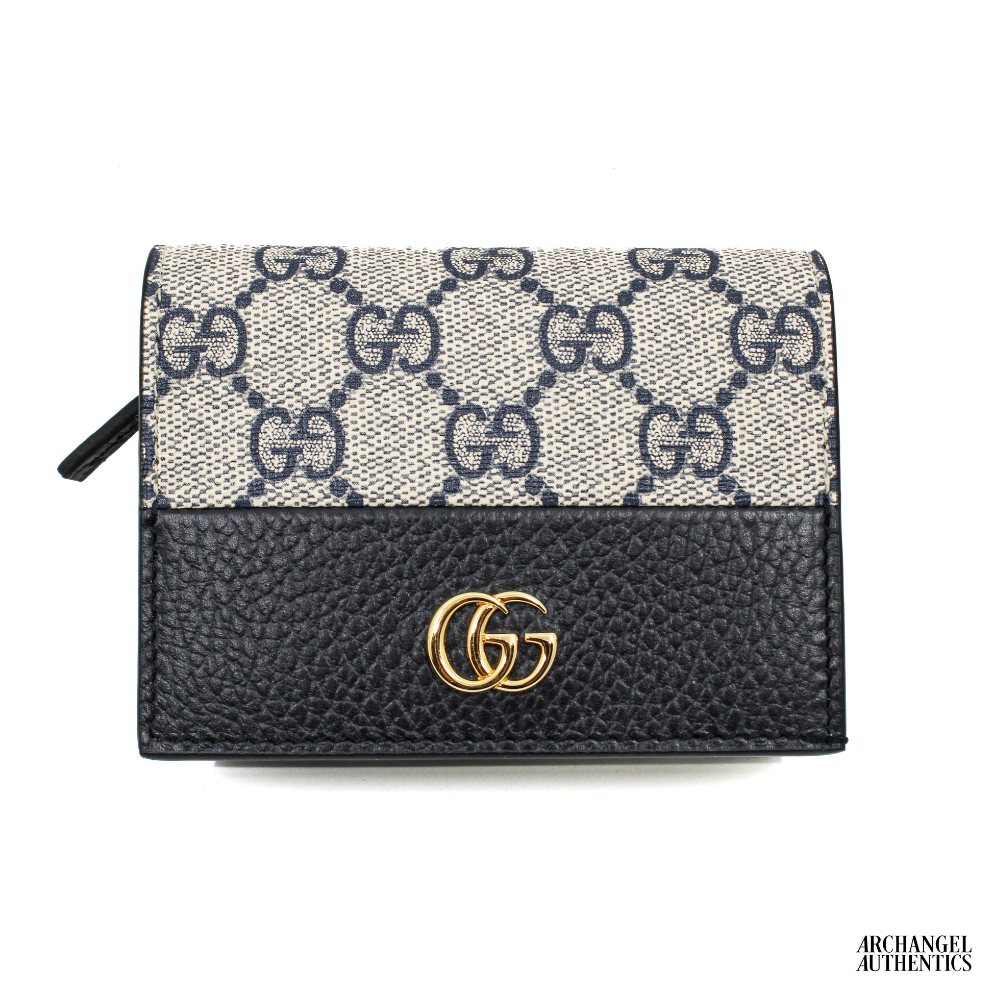 A compact take on Gucci’s Marmont line, this small wallet is crafted in bi-color leather with blue and grey tones. The GG logo detail adds signature refinement, while the organized interior provides practical card and bill storage. Perfect for everyday use without sacrificing elegance.