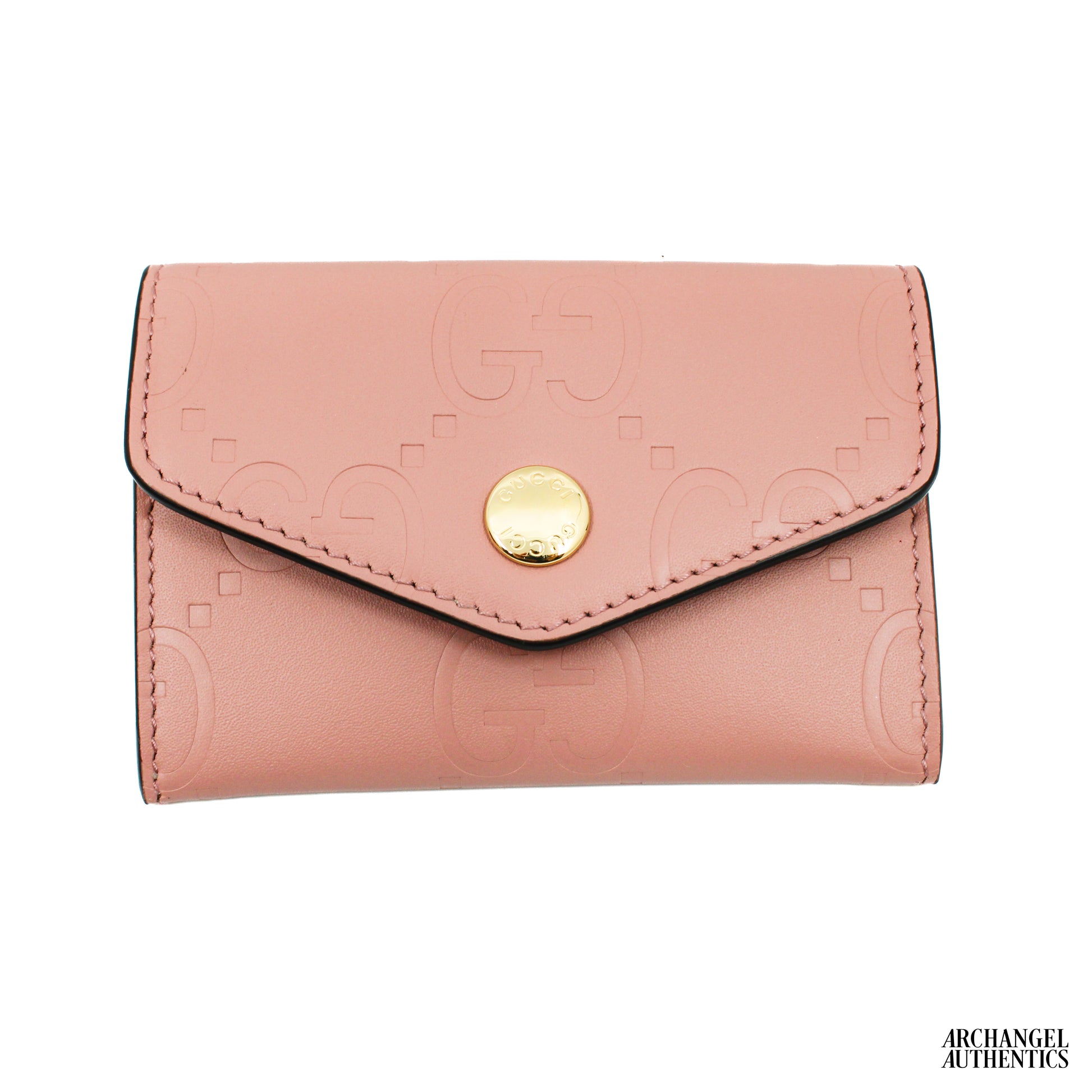 Crafted from smooth calf leather in a refined pink tone, the GG Gilbert Card Case balances elegance with everyday function. The compact design features one card slot, one larger general section, a snap button enclosure, and Gucci’s subtle GG detailing, making it a versatile accessory that slips easily into a pocket or bag.