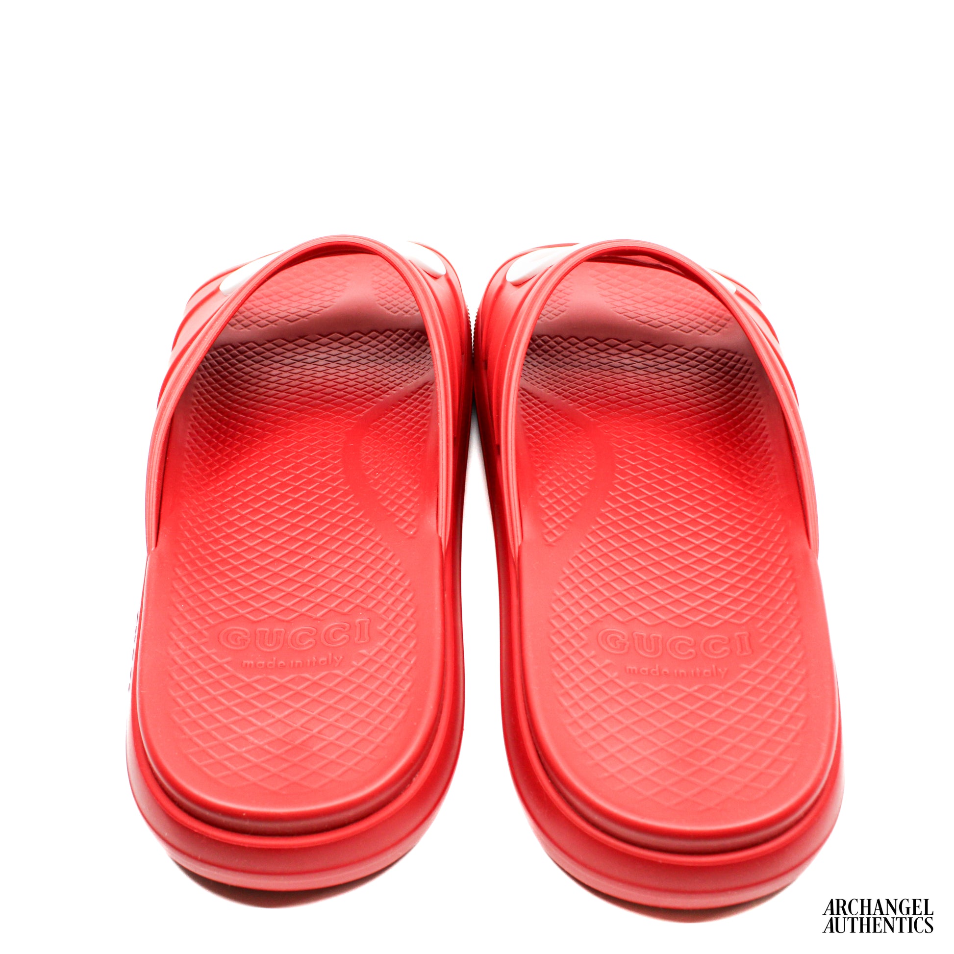 A vibrant take on Gucci’s iconic slide, crafted in Maple Red rubber with a bold Interlocking G motif across the strap. Designed with a molded footbed and lightweight sole for maximum comfort and easy everyday wear.