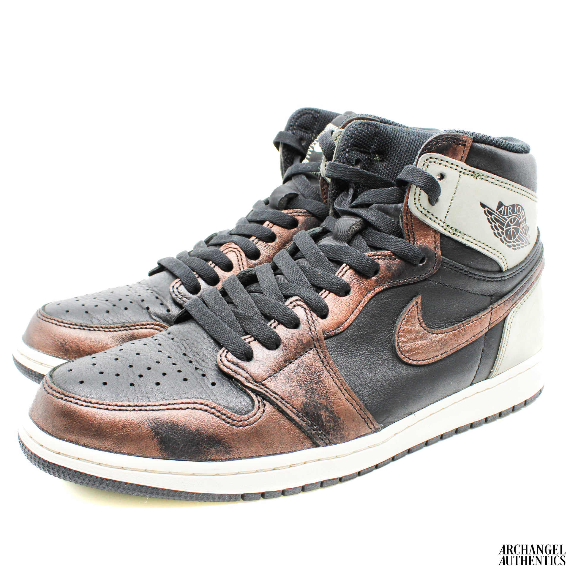 Elevate your sneaker collection with the Nike Jordan 1 Retro High Patina. These kicks boast a unique color palette, blending military-inspired hues with a touch of rust and shadow patina, making a bold statement with every step.