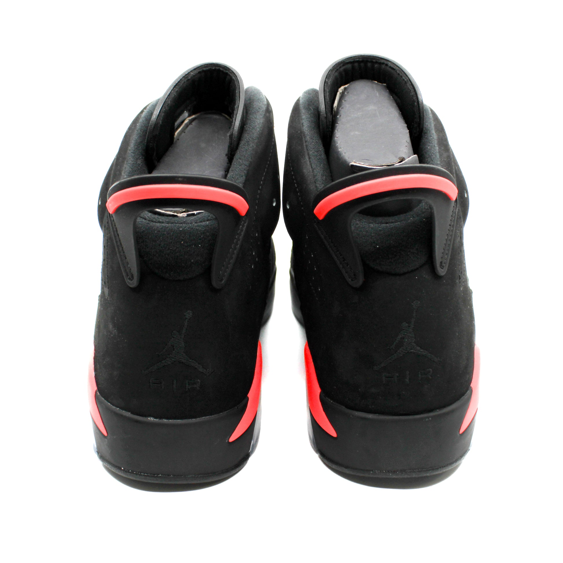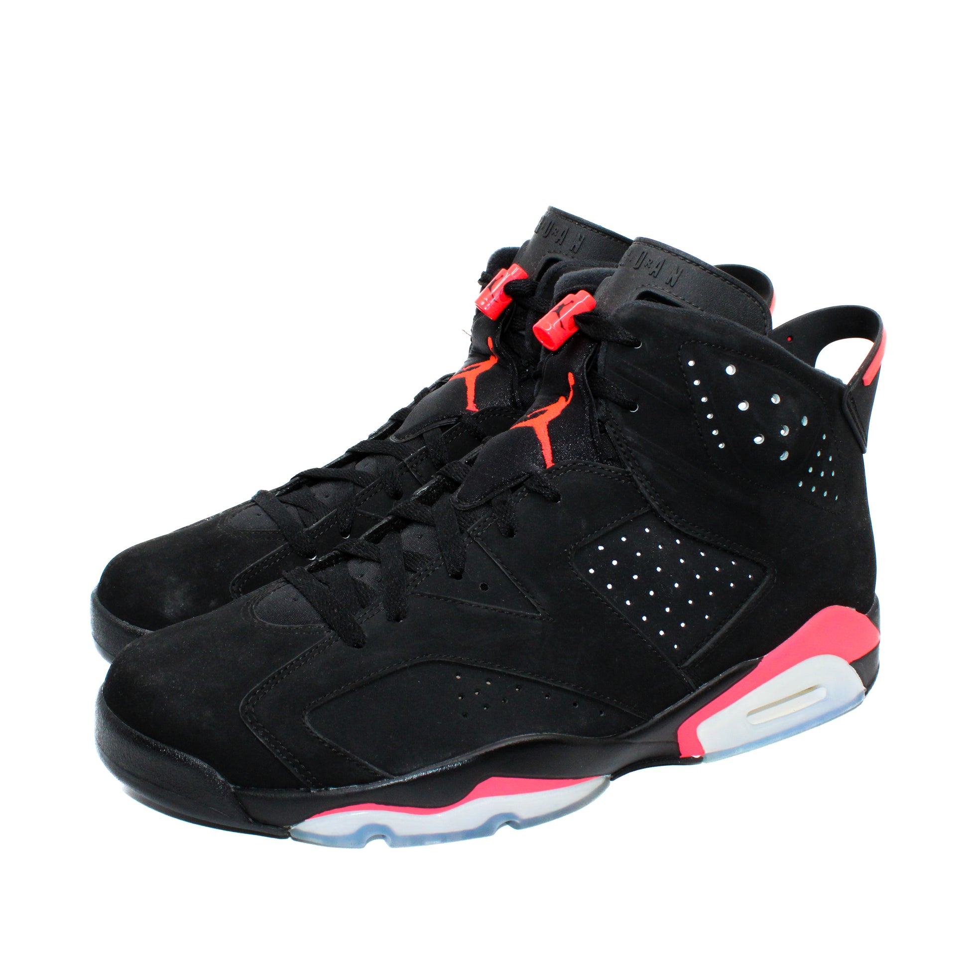 The Air Jordan 6 Retro Infrared Black 2014 is a retro release of a classic Jordan sneaker. It features a black nubuck leather upper with infrared accents on the midsole, lace locks, and branding. The shoe also has a translucent outsole and visible Air cushioning in the heel for comfort. The Infrared Black 6 Retro is a standout iteration of the Jordan 6 and is sought after by fans of the brand and sneaker enthusiasts alike.