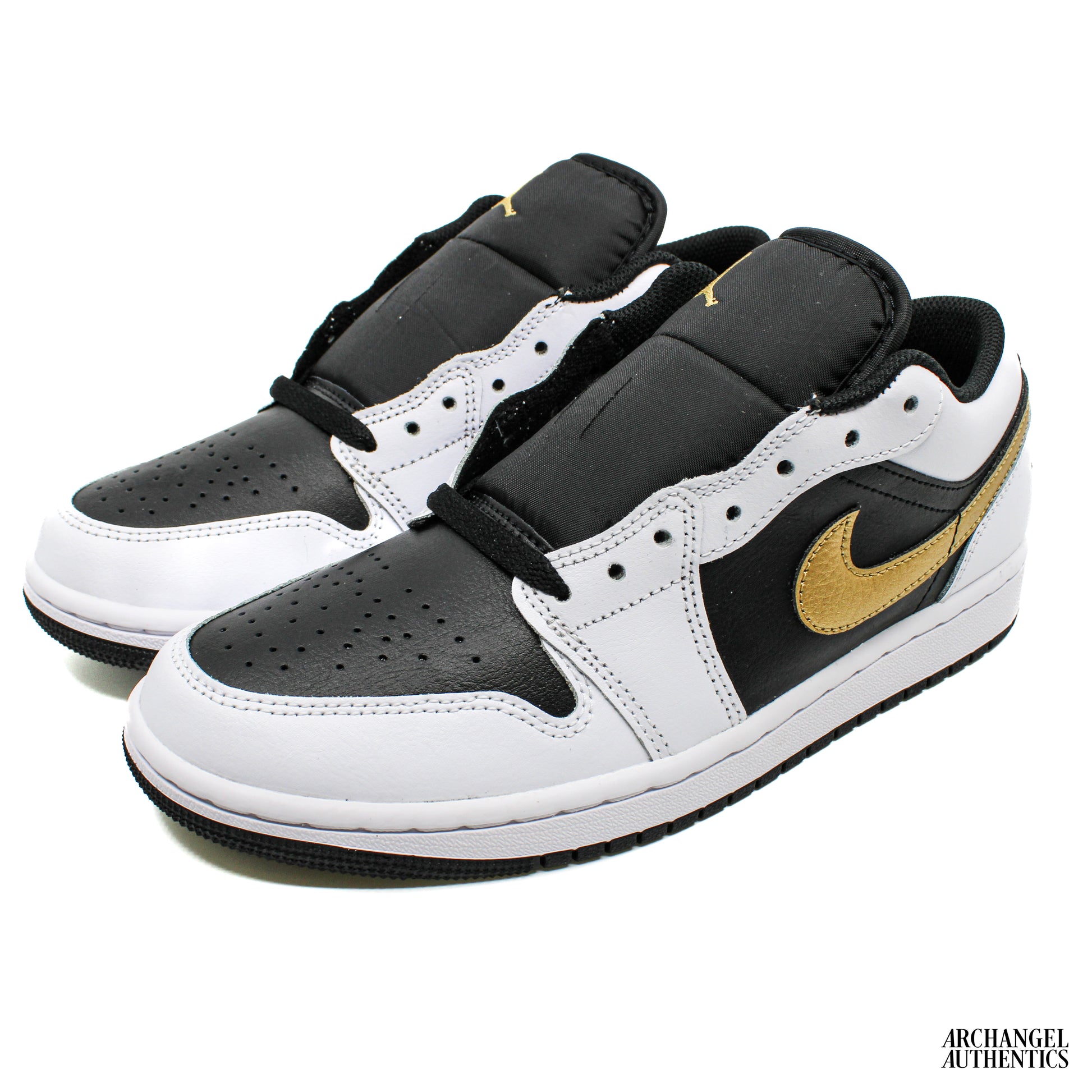 Nike Air Jordan 1 Low White Black Metallic Gold Swoosh