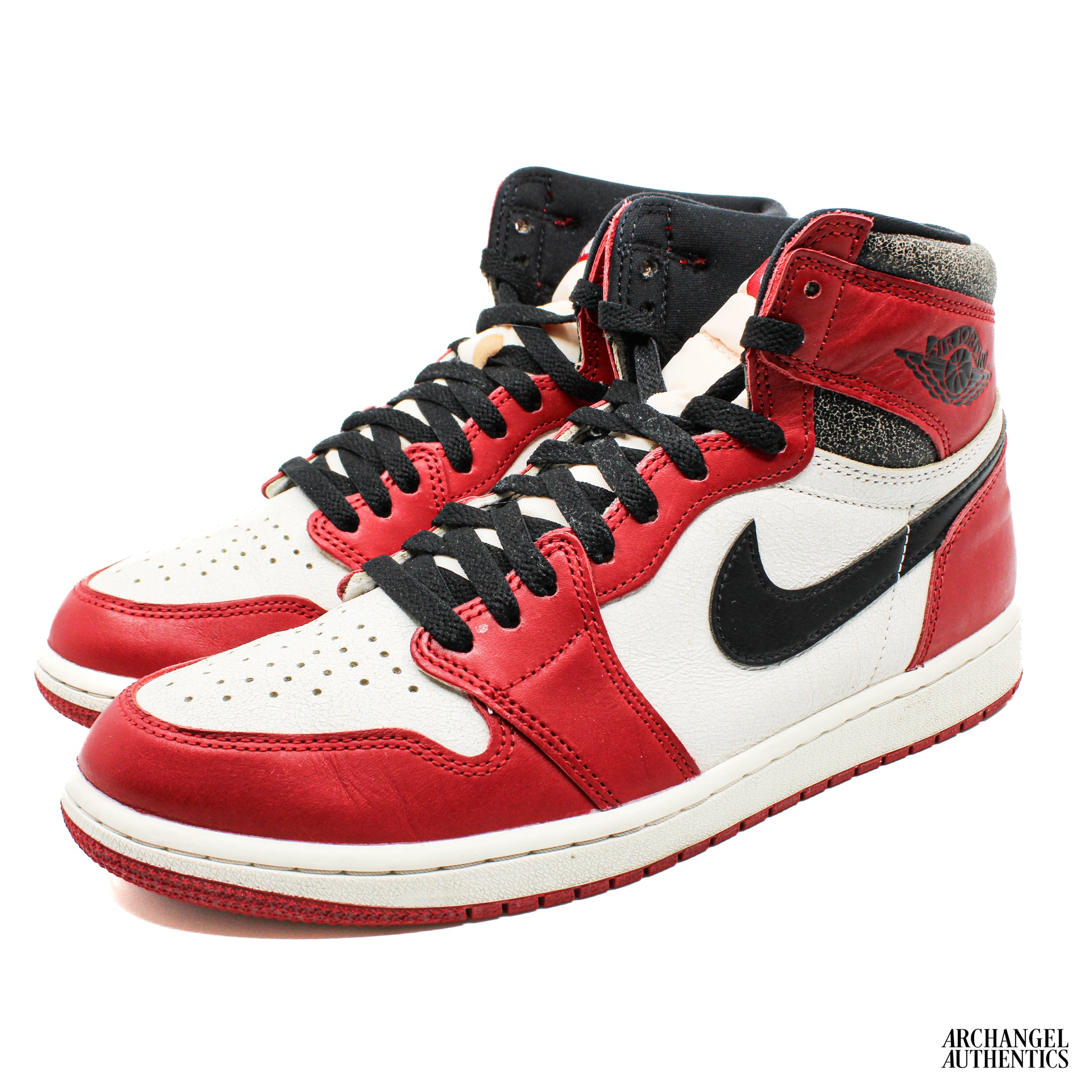 Description: Aged to perfection, this tribute to the “Chicago” AJ1 mimics a vintage pair found in the backroom.